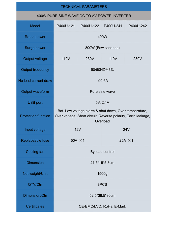 400w Sine olatu hutsa DC AC Power Inverter-era